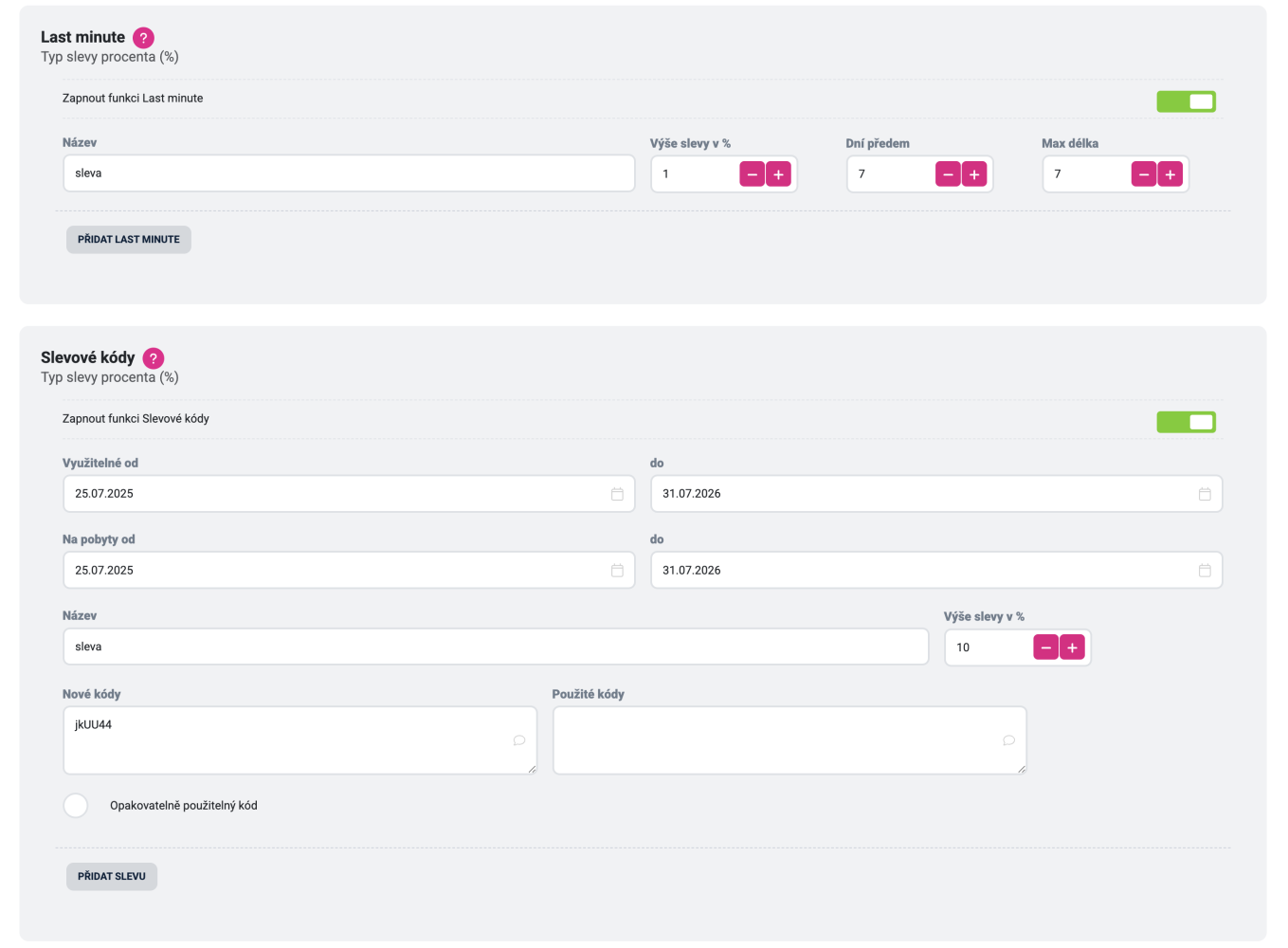 Funkce Slevy vám tak dává větší flexibilitu při práci s cenotvorbou a zároveň nabízí další způsob, jak motivovat hosty k rezervaci vašeho ubytování.