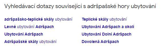 Dalším důležitým kanálem je Váš web a lokální SEO (optimalizace pro vyhledávače). Uživatelé pokládají nejrůznější dotazy a existuje mnoho způsobů, jak Vás mohou najít. Proto je vhodné využít na stránkách co nejvíce obsahu – co lze v okolí dělat (např. obsah - tipy na výlety, v okolí) a co nabízíte nebo lze najít v okolí (např. kulturní a sportovní zážitky a události). Uživatelé mohou také vyhledávat nějakou zajímavou oblast nebo událost a ubytování (např. ukázka na obrázku níže).