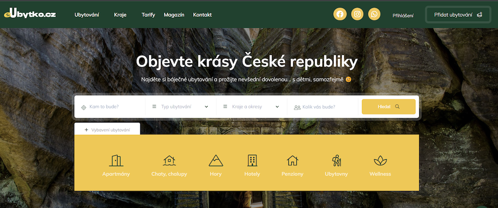 Ubytovací portál eUbytko je na trhu od roku 2020. Najdete na něm široký výběr ubytování jako apartmány, chaty, chalupy, glampingy, hotely, kempy, penziony, ubytovny a wellness zařízení. Dali si za cíl co nejvíce usnadnit uživatelům proces hledání a online rezervace ubytování po České republice (ostatně také proto spolupracují s REZEO).
